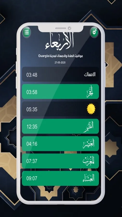 ليظهر لك وقت الامساك ووقت الافطار بشكل دقيق وخاص بالمدينة التي تسكن فيها كذلك يعرض التطبيق اوقات الصلاة