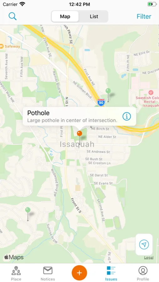 The City of Issaquah’s free app makes it easy to connect with your local government, and submit a variety of requests. If you see an issue – such as potholes, non-emergency hazards and graffiti – simply submit a request (even upload photos!) and track the City’s response. This app also allows you to track requests from other
