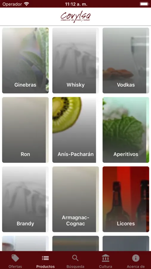 Productos: Se encontrarán todos los productos de los que disponemos, organizados por familias y subfamilias en base al tipo de producto y dentro del tipo a diferentes zonas geográficas. Así nos encontramos con familias como ginebra, ron, whisky, aperitivos...... Pero dentro de las familias, como por ejemplo vino blanco, distinguiremos por zonas vitivinícolas, como Rioja, Rueda, Navarra... El cliente accederá al producto para consultarlo, podrá compartirlo y si lo desea comprarlo vía web. Al mismo tiempo podrá realizar la consulta en base a criterios alfabéticos o en base al precio y ordenarla en sentido ascendente o descendente. Se podrá acceder a cada producto de forma individual y ampliar la imagen para ver los detalles que se deseen. También podrá acceder a productos similares al que esté consultando en ese momento.