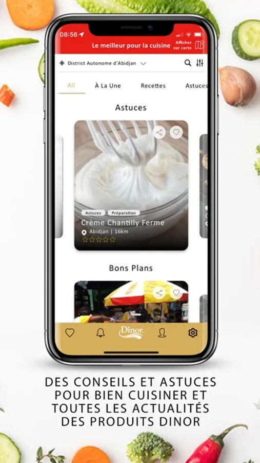 Avec l’application DINOR App, à vos fourneaux et faites la ronde des recettes les plus originales de la Côte d’Ivoire, de l’Afrique et du monde.