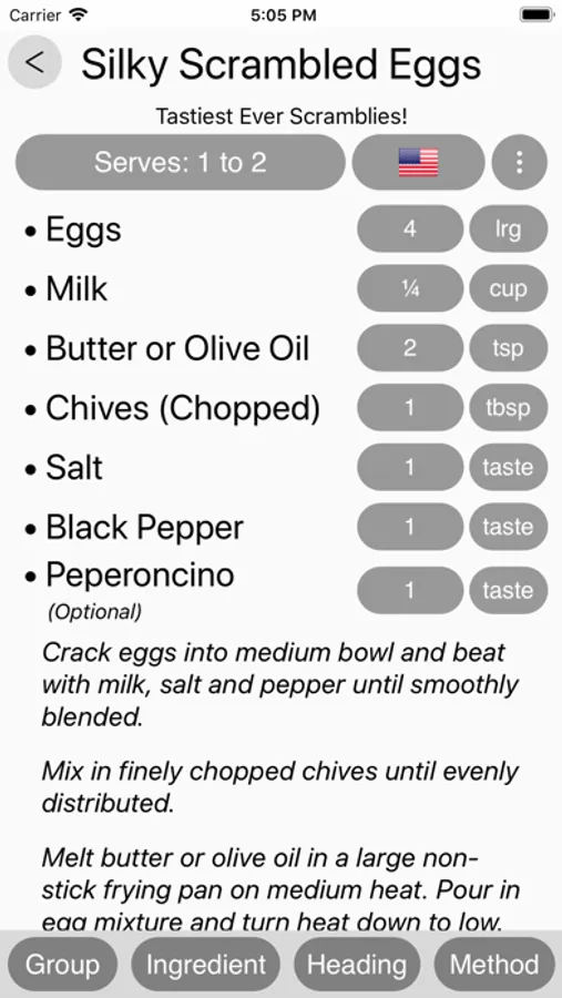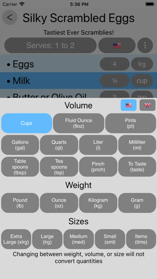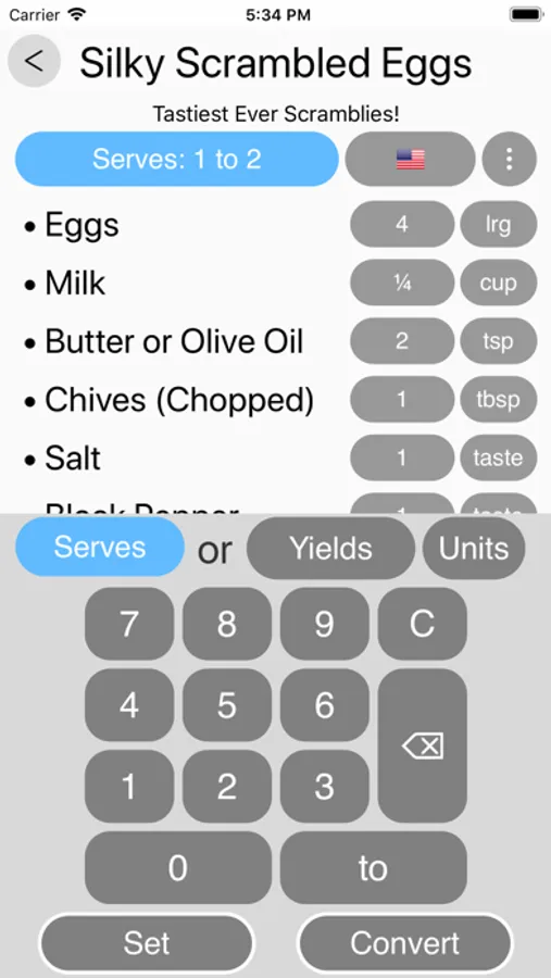 6) Use UK, US and Metric units and convert entire recipes back and forth between international measurement standards with the tap of a button.