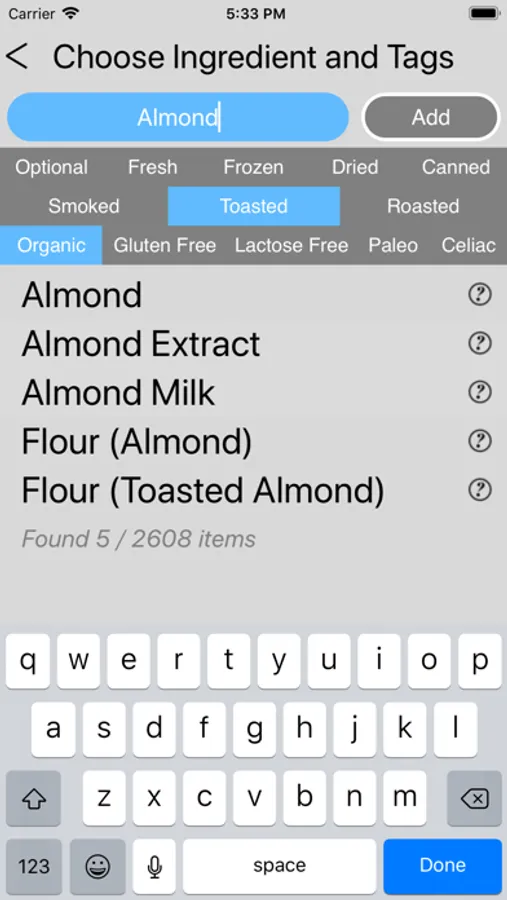 4) Easily enter your ingredients, quantity and units. Save typing by searching the ingredients database.