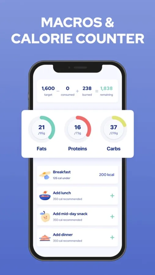 - Macro tracker - track protein, carbs, fat, sugar, fiber, vitamins, and more