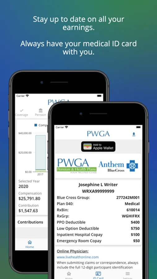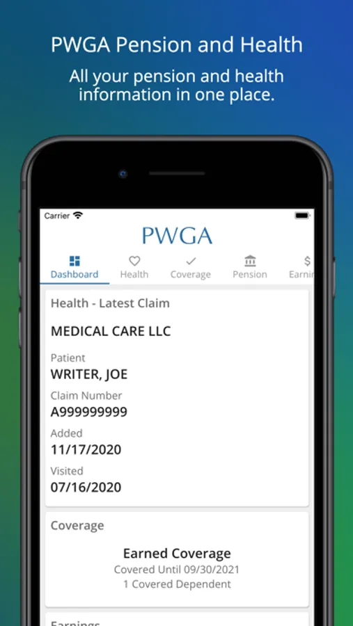 The PWGA app allows an authorized WGA member to access their benefit information.