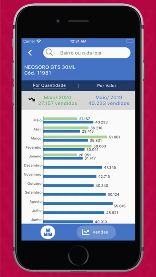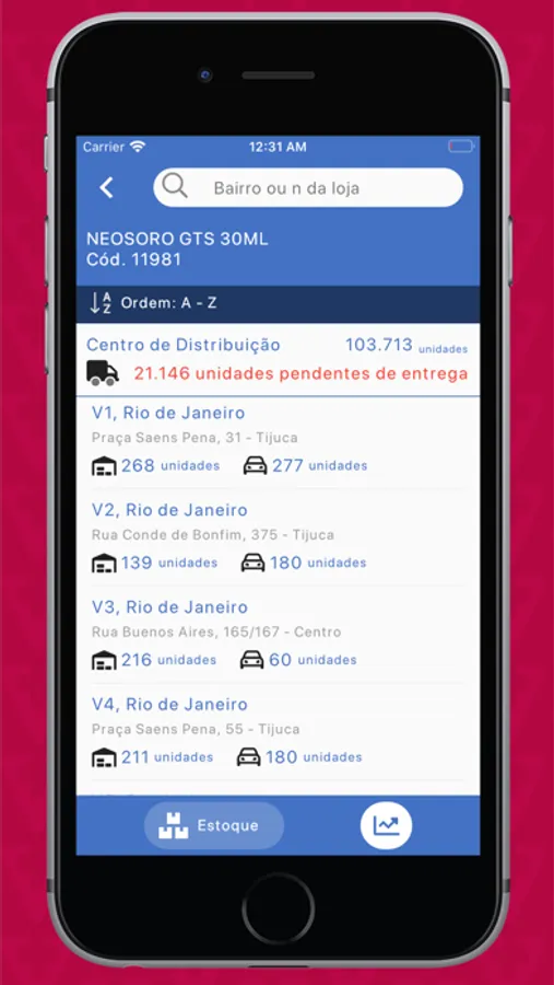 Use o leitor de código de barras ou descreva o produto, para saber em qual loja tem estoque do produto.