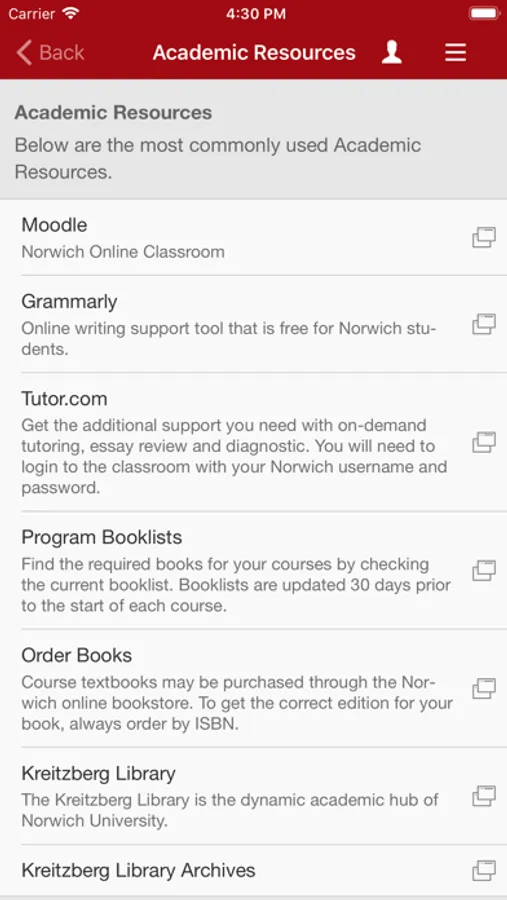 Norwich University Online Screenshots