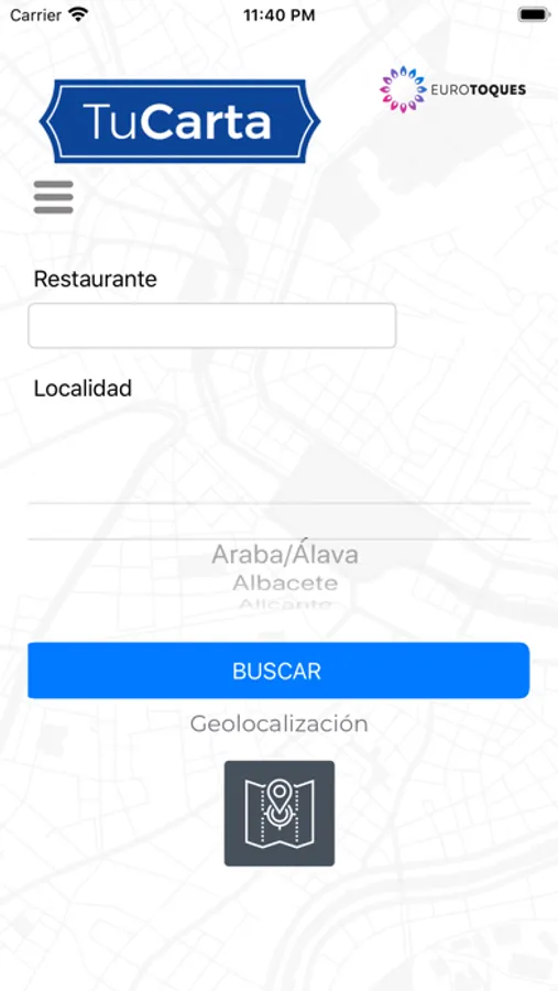 Gracias a TuCarta, podrás localizar rápidamente cualquier Restaurante mediante el buscador incorporado. También te permite encontrar los más cercanos utilizando tu geolocalización. Para ello, descargaté nuestra App para iOS.