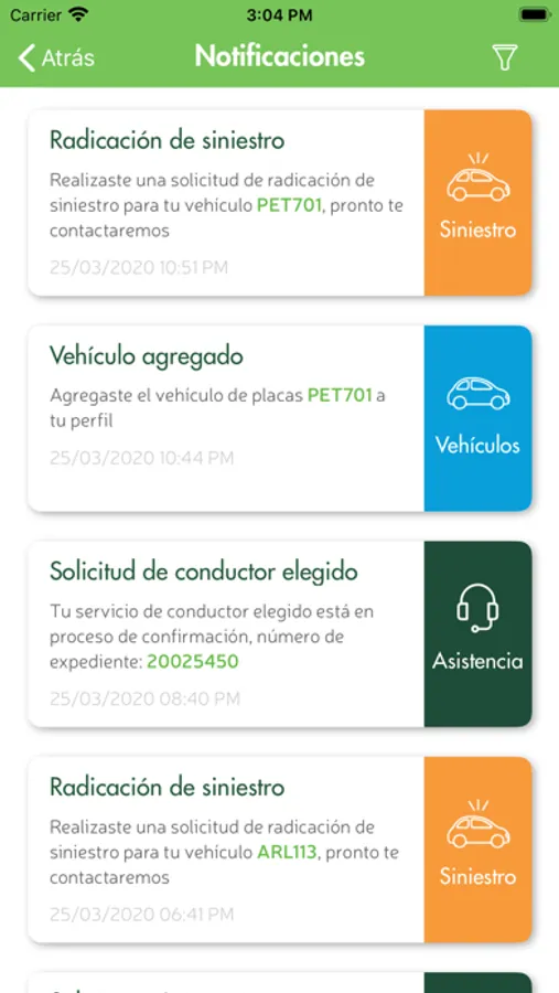 En el menú encontrarás la opción de Preguntas Frecuentes, que está dividida por categorías para resolver más fácil tus inquietudes. Adicionalmente, podrás consultar información de nuestras oficinas en el país y nuestros talleres asociados, recuerda que puedes llamarlos directamente desde la aplicación y conocer su ubicación.