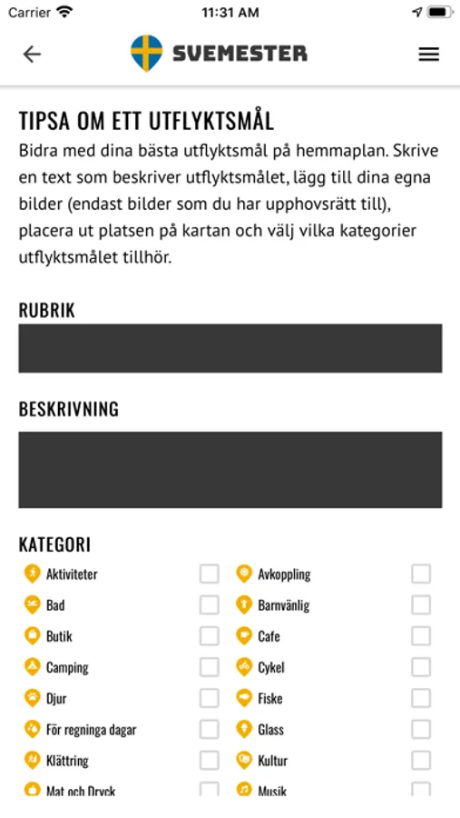 En app för alla som söker utflyktsmål i Sverige.