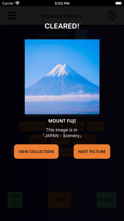 Can you guess what the scrambled picture is? That’s the basis of this highly unusual game. You have to pick the right answer from a list of six clues. Answer correctly, and the picture is added to your collection.