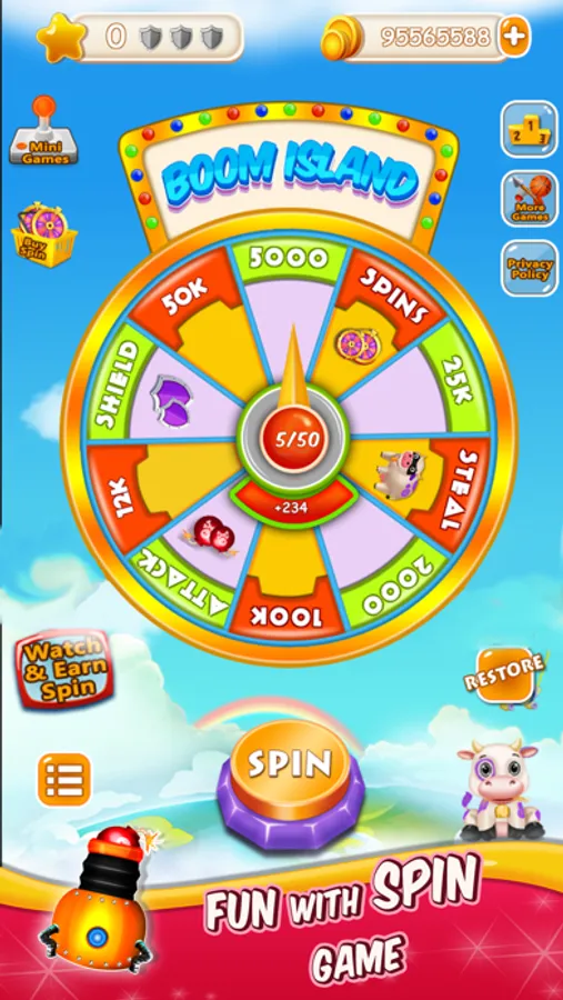 Build your exclusive Boom islands of your own with the help of little cute pets, push the button and spin the wheel, win some luck today!