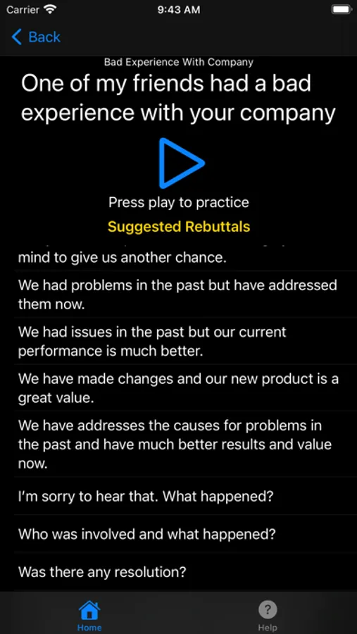 This game changing training app speaks a common brush-off objection and then listens and evaluates your response. It provides advice and proven responses you can use to swat away the brushoff objections and start real sales conversations.