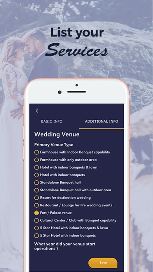 Vendor app is designed to give virtual experience of a physical business. All the product and services that Vendor show in actual shop to attract new couples who are getting married and to their friends and family members can be displayed in the app.