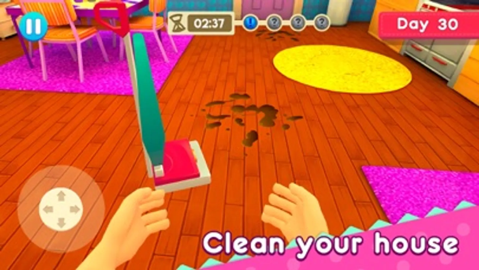 This game is not a simple mother simulator, where you care about your baby only in an empty house. Here you can find more characters that need you and your assistance! Day after day you will face new activities, duties, funny situations, and more. Will you handle with multitasking of mother’s everyday life?