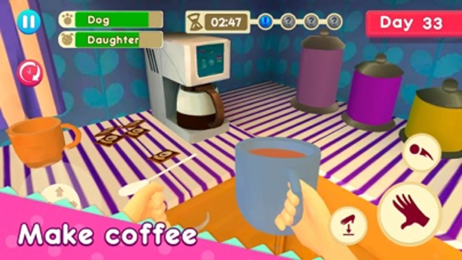 Meet your husband after a day of hard work, make him feel comfortable and beloved. Pet your dog. Listen to the music. Eat sushi or fresh fruits. Play. Make yourself a cup of coffee. Get angry when everything is going out of control, make another cup of coffee after calming down. Be concentrated, be lazy, be happy mother or be a devil mother. These are your rules, your virtual world and your virtual family!