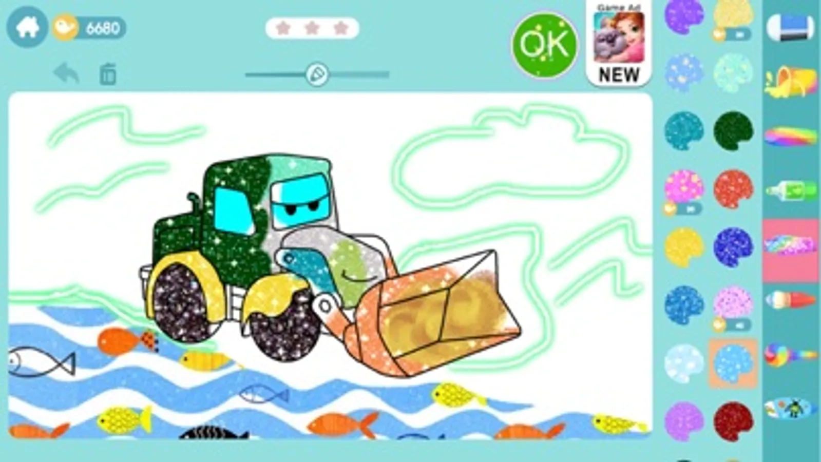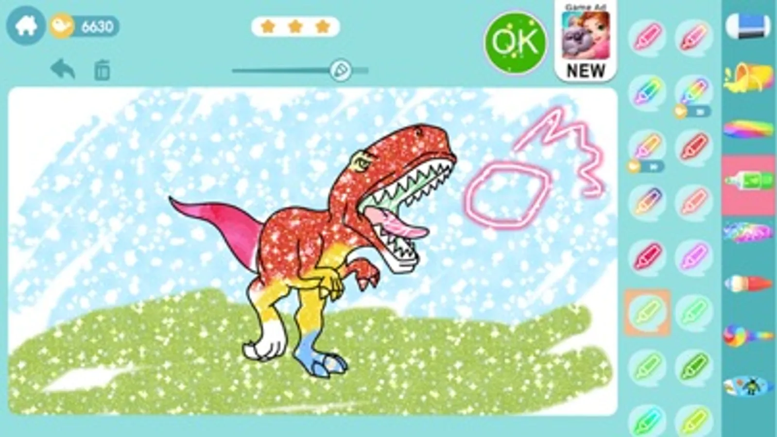 Pick a pattern you like and tap to color. Choose from various brushes, crayons, dazzling colors, and stickers to create a fancy artwork.
