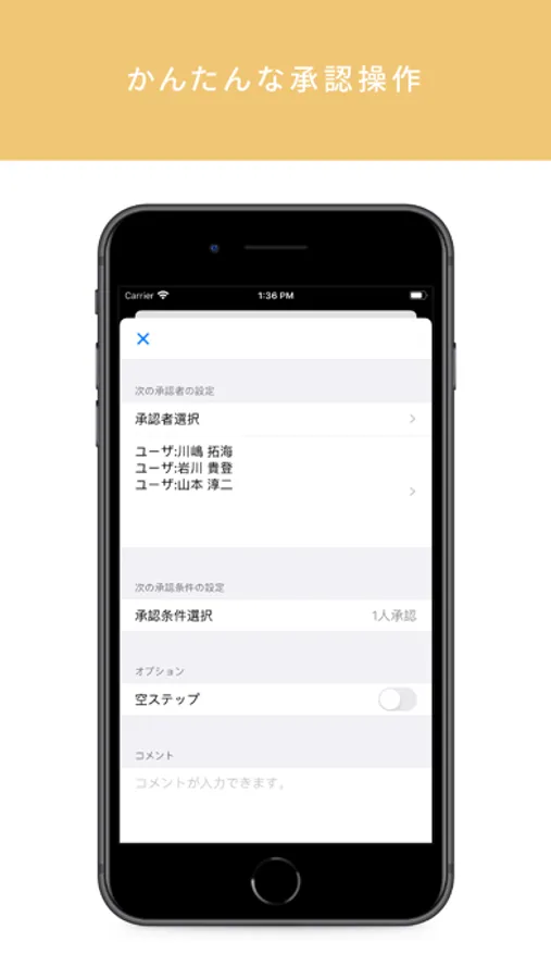 ・Push通知機能(承認依頼通知、空ステップ通知、取消通知)