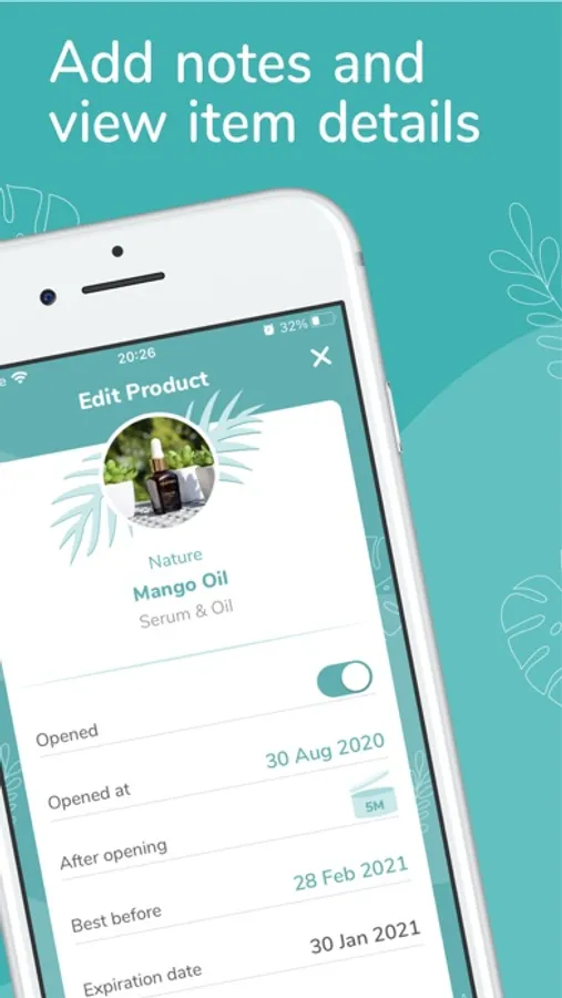 • Just provide expiration date or after opening interval and Papseo will automagically count how much time has left and will inform you about expiration of that product.