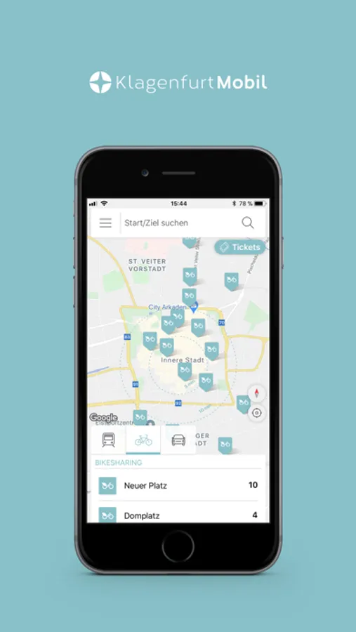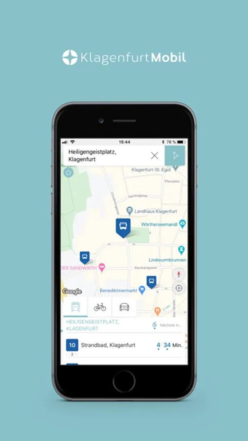 KlagenfurtMobil vereint die Fahrplanauskunft inkl. Echtzeit-Routing (zuvor auch schon mit der „qando“ App) mit der neuen Möglichkeit, Fahrscheine bequem über das eigene Smartphone zu kaufen. So kommen Sie zukünftig schnell und wann immer Sie möchten zu Ihrem Busticket. Zusätzlich erhalten Sie in KlagenfurtMobil Informationen zu Sharing-Angeboten, da z.B. auch die nextbike- Stationen (inkl. der Info, wie viele Fahrräder am gewünschten Standort zur Verfügung stehen) angezeigt werden.