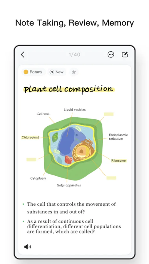 - Organize by memory status: new notes, in memory, and remembered content at a glance.