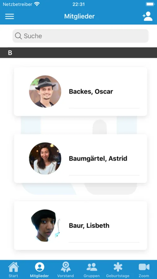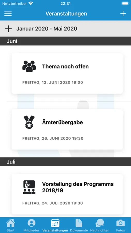 Organisieren Sie Ihr Verbandsleben vollumfänglich digital: Kommunikation von Neuigkeiten und Mitgliederzeitschriften, Verwaltung aller Mitgliederdaten, Erstellung von Projektgruppen, Organisation von Veranstaltungen mit Zu- und Absagen, Einzel-, Gruppen und Organisations-Chat, Bereitstellung von Verbandsdokumenten, Fotopinwand und vieles mehr...