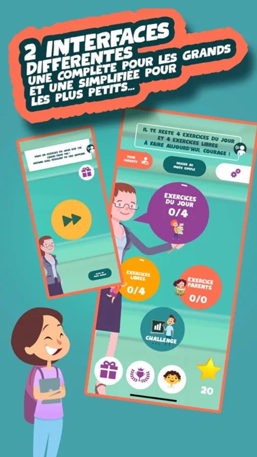 Dans les 2 cas, le mode parents reste accessible et vous permet d'assigner des exercices à vos enfants et de suivre leurs progrès facilement.