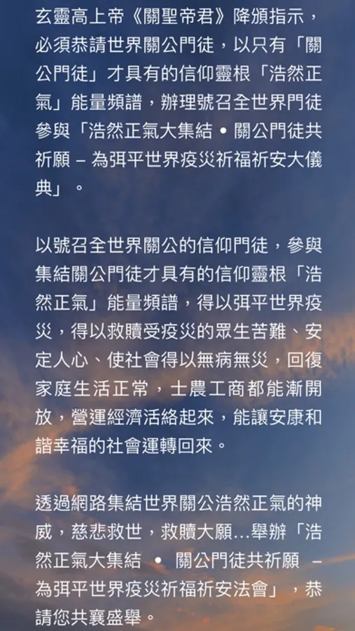關公門徒共祈願 - 為弭平世界疫災祈福祈安法會」,恭請您共襄盛舉。