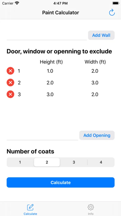 Input the dimensions of the room to be painted and the opening (window, door ..) to subtract the area to be painted. Click the button to calculate the amount of paint and man-hours needed for this job.