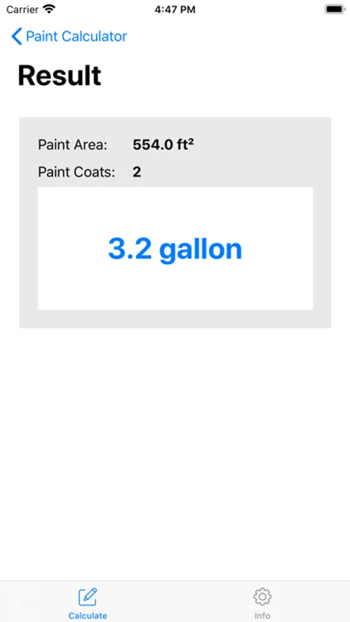 The estimate divides the total square footage by 350, as one gallon of paint covers 350 square feet.