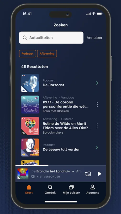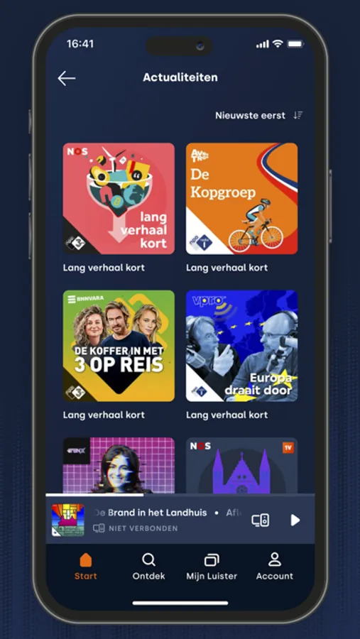 NPO Luister is de gratis podcast-app met al het aanbod van de Nederlandse Publieke Omroep. Luister naar podcasts, download ze voor een later moment of volg een podcast serie zodat je nooit een aflevering mist. Je vindt jouw favoriete podcasts en downloads op een overzichtelijke centrale plek in de app.Ben je op zoek naar een specifieke podcast? Zoek dan op omschrijving of titel van de podcast serie of raak geïnspireerd door een van de podcast series binnen onze categorieën.