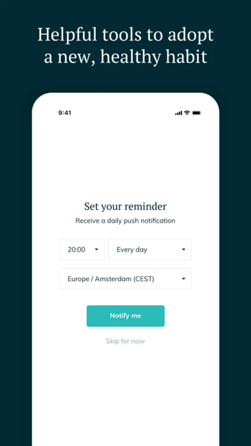 After logging in, we ask you to set your reminder. Receiving a daily notification is a perfect way to get journaling into your system.