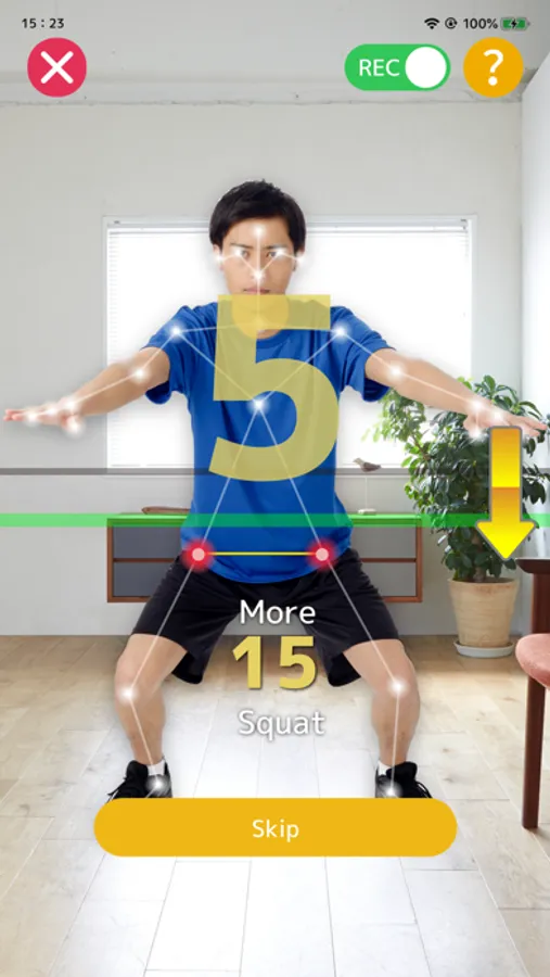 All you have to do is capture your entire body on the camera of your smartphone or tablet, and you're good to go! The AI detects 30 skeletal points from the camera image and voice counts your movements automatically. You can concentrate on your training, check how many calories you have burned, and your daily exercise volume is recorded as data.
