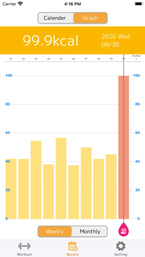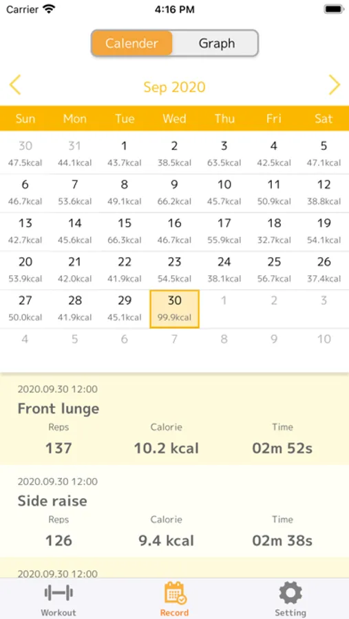 There are also two ways you can check your training records with: a calendar format that shows you at a glance how many calories you've burned on any given day, or a bar graph format.