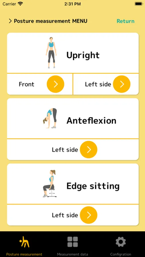 With the posture check function “Posedemo”, you can use the AI to automatically detect your skeletal structure and measure your posture. You can check your posture not only from the front or side while standing, but also when sitting or bending down, and by repeating the measurement, you can compare your posture with past measurements. Check it every day to maintain your ideal posture!