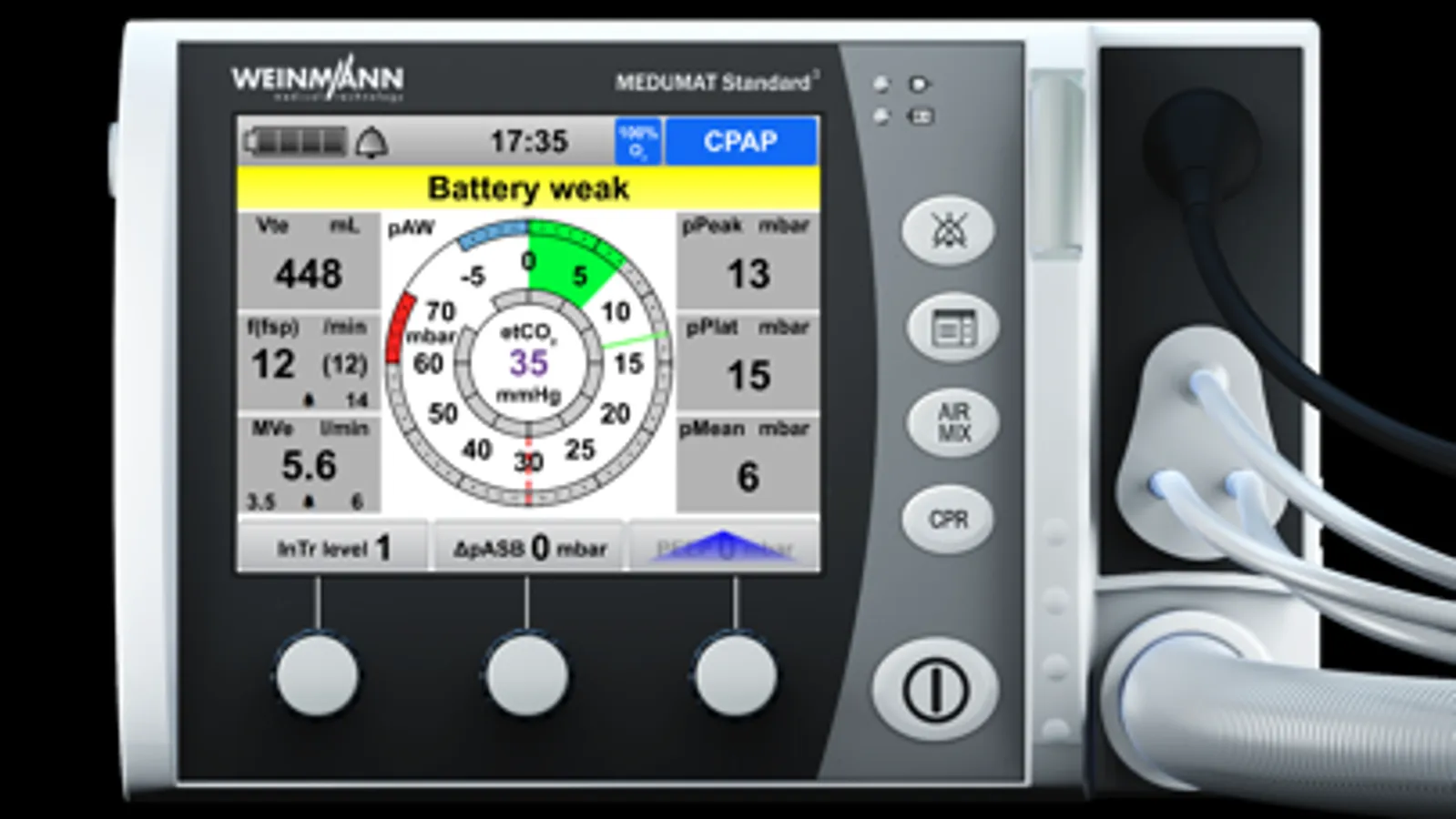 In cooperation with WEINMANN Emergency Medical Technology, a ventilation simulator based on MEDUMAT Standard2 has been developed. MEDUMAT Standard2 is used in the rescue service, air rescue or in the military medical service.