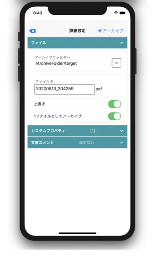 You can convert image files captured by the camera function of your mobile device or saved in your mobile device to PDF and archive them. You can also add custom properties and comments to the documents to archive.