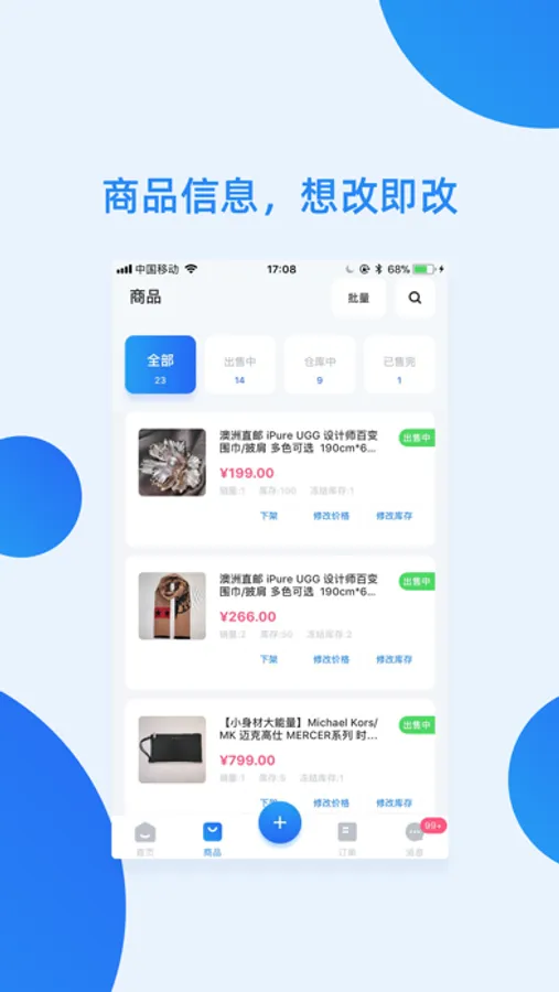 商品管理:上下架、改库存、改价格,商品信息随时更新,想看即看,想改即改