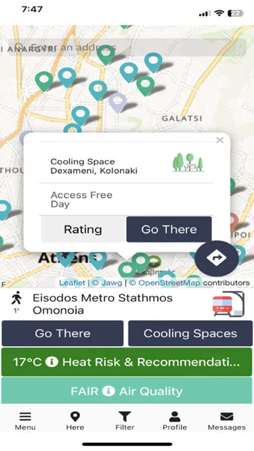 EXTREMA Global app is designed to protect you from extreme heat temperatures. It allows you to assess your real time heat health risk, to give you advice, to help you identify the nearest cooling spaces in the EXTREMA Cities and find cool walking routes in the city.