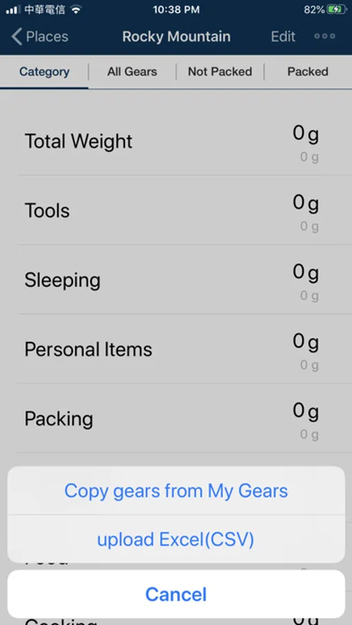 3. Copy/create a new hiking place based on the gear inventory or existing places.