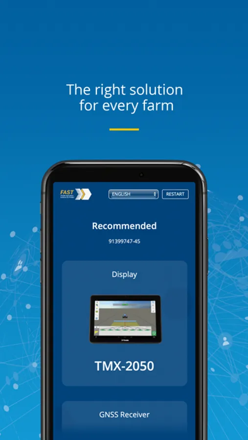 The FAST app - Flexible Agriculture Solution by Trimble - is a 10 question product recommendation tool.Each question will help the system recommend the best solution for you from our lineup of guidance displays, GNSS receivers, steering solutions and RTX correction services.