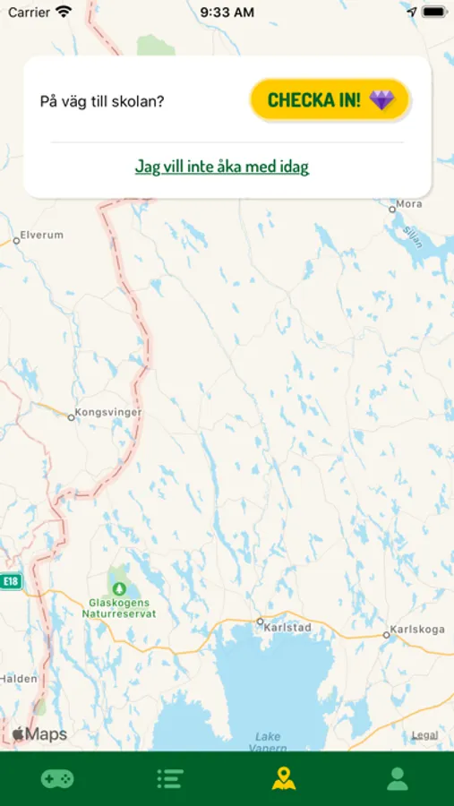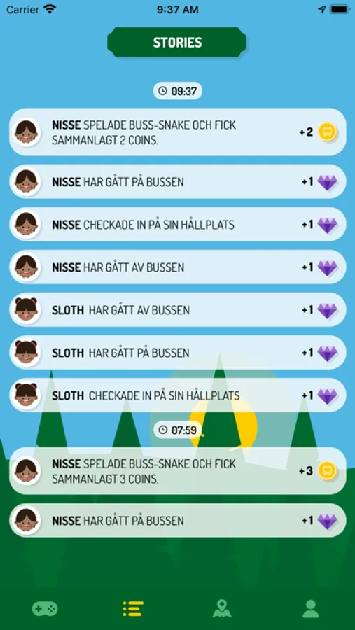 - Visa att du ska med på bussen genom att checka in hållplatsen - föräldern får en notis.