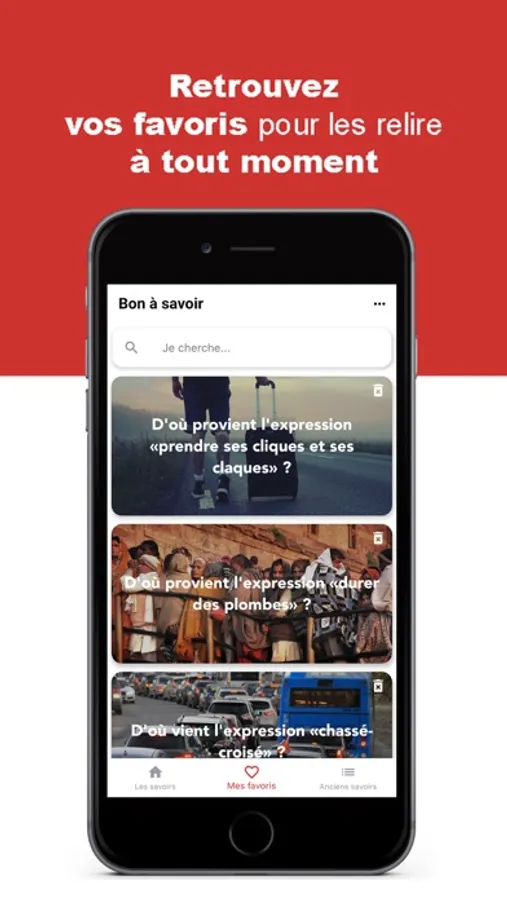 Sauvegarder vos savoirs préférés directement dans votre application pour relire quand vous le voulez.