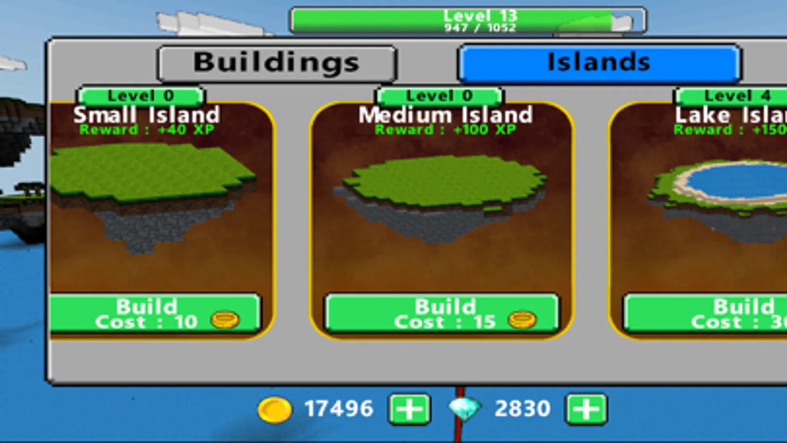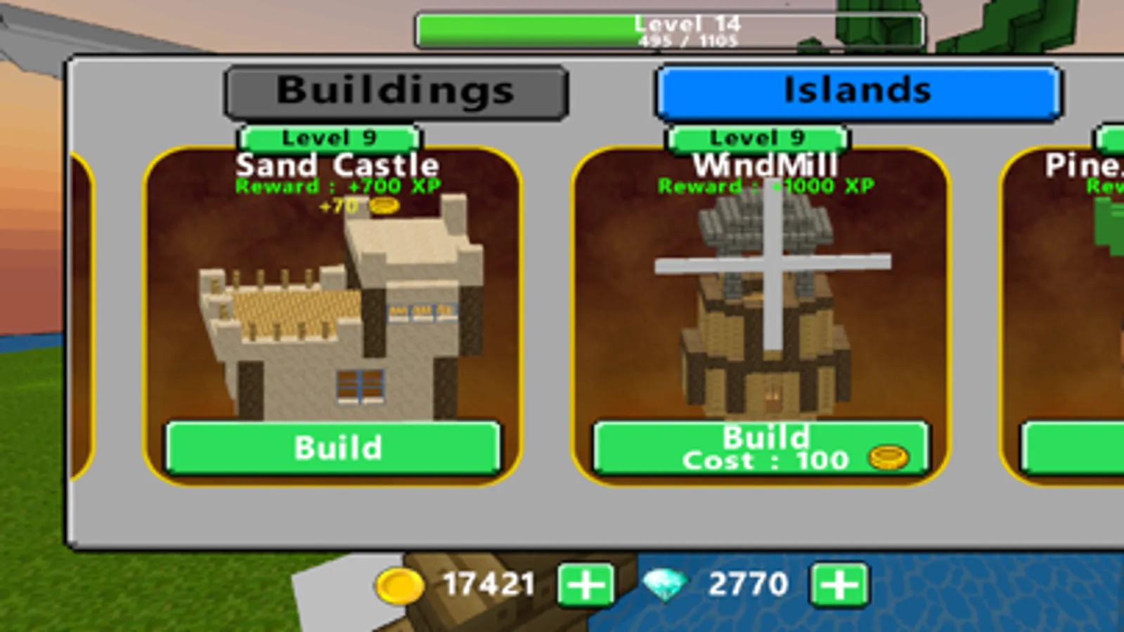 In a unique block world made of floating islands above the sea, you will be able to construct your own city in the sky with more than 40 buildings and make your own constructions with more than 60 blocks (Water, TNT, Diamond...).