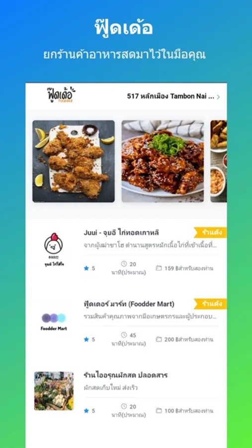 นึกถึงยำเเซ่บๆ? เนื้อหมูสดใหม่? น้ำยาปรับผ้านุ่ม? ฟู๊ดเด้อ เดลิเวอรี่พร้อมส่งให้คุณแล้วจากทุกร้านอาหารและร้านค้าชั้นนำ นั่งชิวและรอรับที่บ้านได้เลย