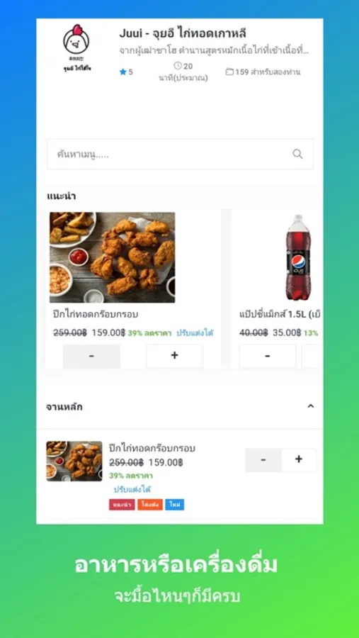 2.เลือกร้านอาหารและสั่งเมนูที่ต้องการ