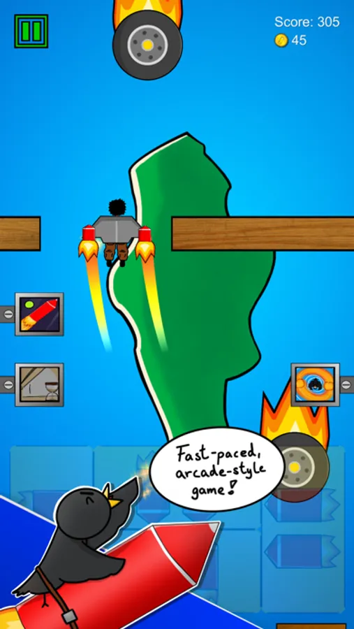 This fast-paced, arcade-style game will elevate your reflexes and hand-eye coordination to the next level! And you will need them at your best to save your loved one! To reach her, you have to dodge the falling cargo and GIANT BLACKBIRDS!