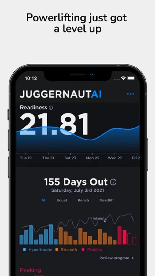 JuggernautAI finds the best way to progress to ensure you maximize your training while also managing fatigue through a strategic phasic periodization plan.