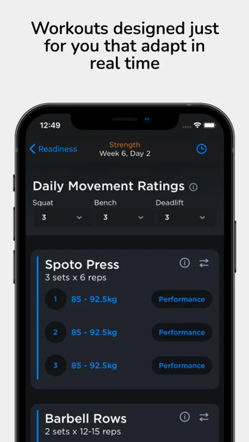 As you progress, the system will continue to adapt your training plan based on your real-time individualized feedback, ensuring you continue to grow and achieve your strength goals.