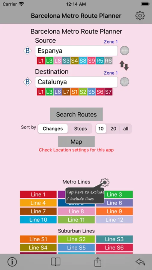 This App helps you find train routes which can be used to travel from one location to another in Barcelona city across Metro, Rodalies, Suburban train and Tram lines.