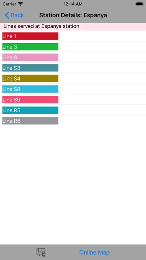 You can also view the detailed station list for each train line in Barcelona. You can long tap on any station name from the list to see it on online maps.